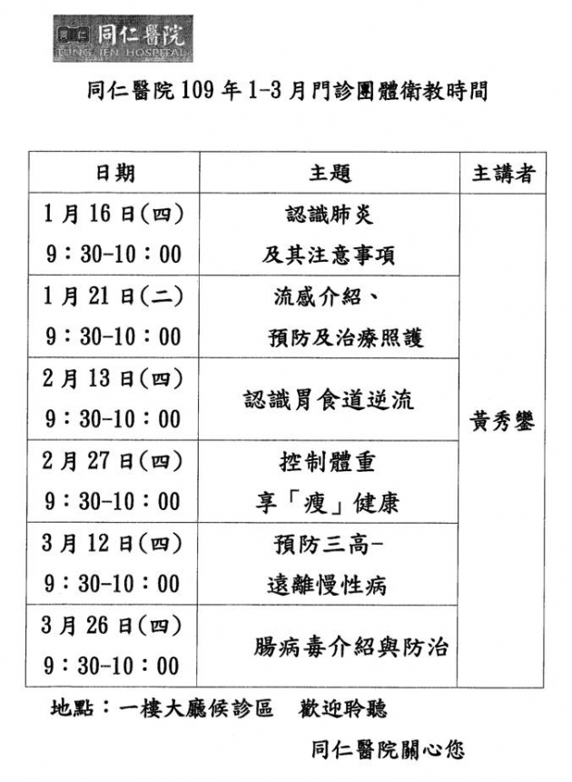同仁醫院 231023 新北市新店區民權路89號 統編:33821252